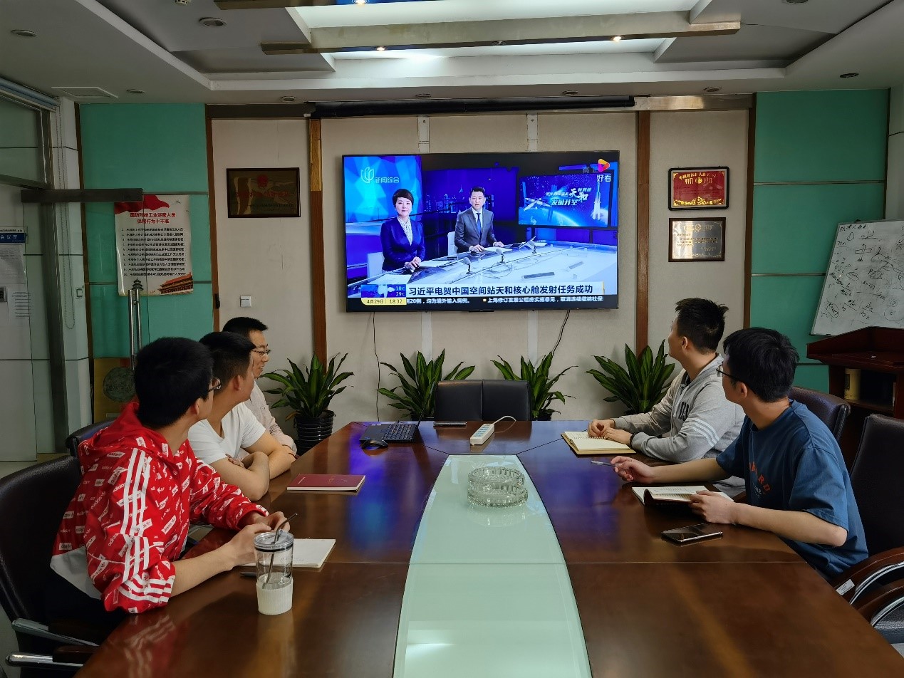 在4月29日空间站天和核心舱发射升空当天,我和同学们在教研室集体观看了发射直播。CCTV13进行了近一个小时的全程直播,中央领导也到北京航天飞行控制中心观看了发射实况。这表明了国家对此次航天发射任务的关切,也表明了对航天人万无一失的信心。作为新时代航天人,我们应该扎实学习理论功底,实事求是,弘扬“两弹一星”精神和载人航天精神,努力成为航天事业合格的接班人。