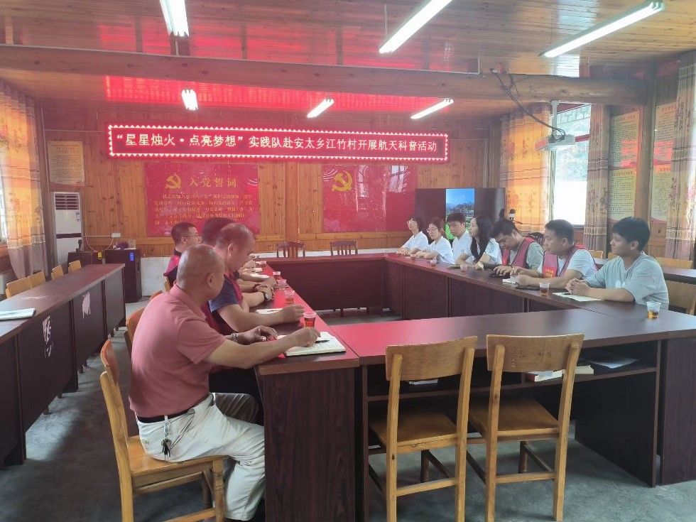 7月18日上午,pg游戏电子模拟器“星星烛火,点亮梦想”实践队在融水苗族自治县江竹村开展航天知识科普活动。江竹村驻村第一书记陆风、pg游戏电子模拟器团委书记孙艳梅及航天科普志愿服务队队员等参与活动。