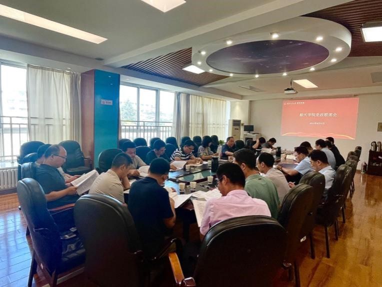 最后,黄越指出,全院上下要围绕学校、学院发展目标凝聚共识、统一思想、真抓实干,以新一轮全员聘岗为契机,充分发挥党支部战斗堡垒和党员先锋模范带头作用,及时总结巩固主题教育成果,深入促进党建与业务相融合,将“党旗插在教学科研的最前沿”。院领导、党委委员、各研究所所长、教工党支部书记要树立“追求一流、追求卓越”的担当意识,带头做到“永远在一线、永远在状态、永远在前列”,全力推动各项工作落地落实。岳晓奎强调,要对标对表学校要求和政策,加强学院顶层设计和统筹谋划,认真分析存在的差距不足,有针对性地谋划改革举措;要上下对齐,双向发力,激发办学活力,提升人才培养质量,强化战略科技力量建设,加强高层次人才引育和后备队伍建设,深化国际交流与合作,以牢记初心使命的责任感和敢于奋发超越的紧迫感,共同推进学院高质量发展。