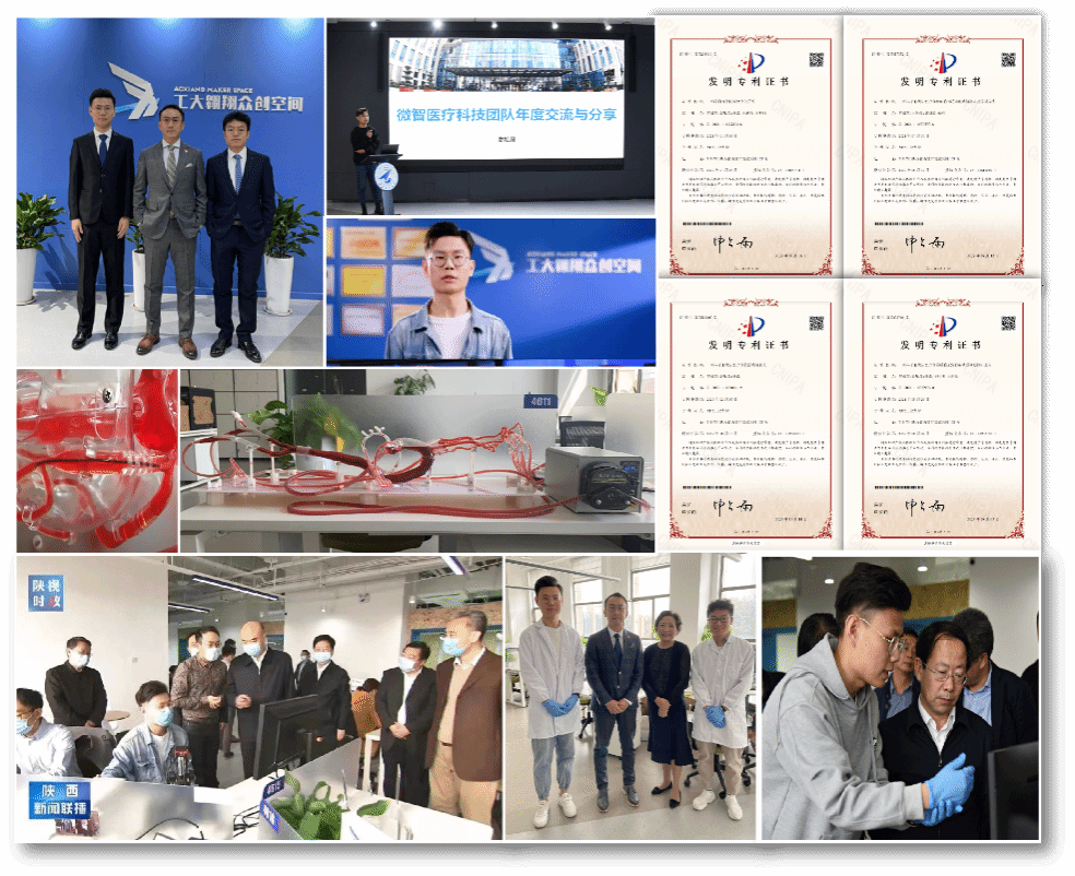 双创篇:厚积薄发 为国铸剑。总师育人文化不仅教会他低调务实的蛰伏,更教会他厚积薄发后为国铸剑的家国情怀。他将目光瞄准到与研究成果高度相关的介入性医疗器械产品,作为负责人创立了微智医疗科技团队,致力于研发新一代介入医疗器械产品,与多个医院的神经内科医生面对面交流,了解临床痛点所在,并与北京阿迈特医疗器械有限公司等多家单位达成了深度合作研发关系。在研发推进过程中,以学生第一或第二发明人申请了四项国家发明专利且均在上学年获得授权,其中一项以技术开发和转让的方式实现成果转化。资金全部投入到了体外实验的开展中,成功验证了微执行器对于类血栓颗粒的体外可控抓取,以及微型机器人在人眼球模型等限制性环境中的人体外运动试验。开创性工作也受到了来自社会各界的肯定与高度评价。