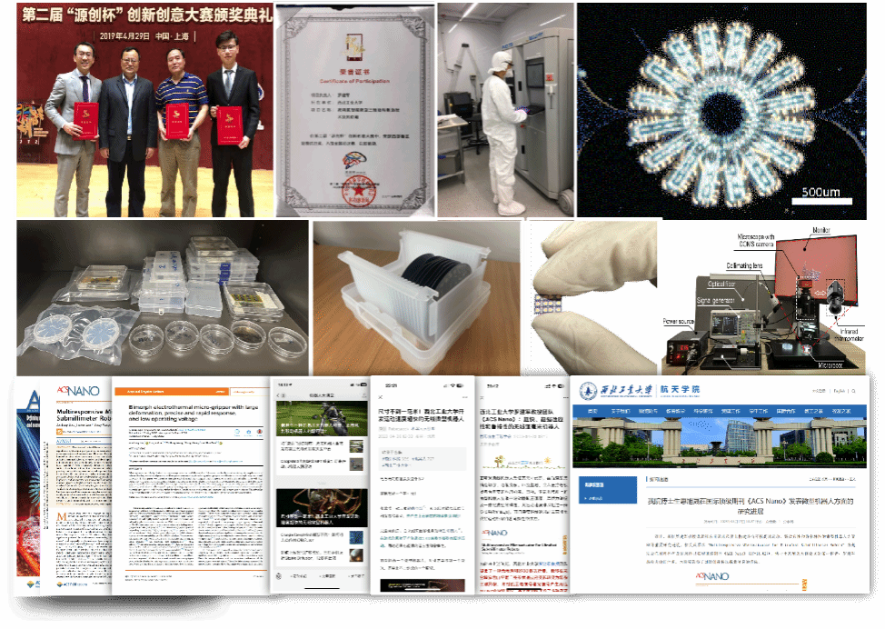 科研篇:低调务实 兼收并蓄。学校总师育人文化的浸润在他心中播下了一颗报效祖国的种子。作为申请人之一历经重重选拔获得了国家重大项目立项,随后又作为学生第一参与人,完成该国家重大项目立项的研究内容,达成所有技术要求和技术指标。他在亚毫米级三维微执行器和微型机器人方向打破了二维工艺无法制备三维结构微执行器的限制,将驱动频率从传统的1Hz提升到了100Hz以上,更是打破了亚毫米机器人运动速度难以越过1倍身长每秒的现状,达到了国际先进水平。上学年以第一作者身份发表了两篇高水平SCI论文,其中一篇更是发表到影响因子高达18的纳米科技领域顶级期刊上。论文一经发表便收到了广泛关注,先后被多个知名自媒体的报道,累计阅读量超过10000次。同时论文还被许多顶尖期刊的高水平论文所引用,许多国际学者纷纷发来邮件沟通交流研究成果。