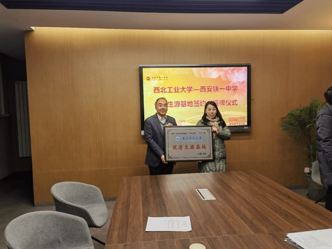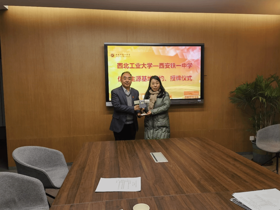 首先,铁一中学副校长龚少华代表学校对岳晓奎一行的到来表示热烈欢迎,介绍了学校的育人文化、办理理念和办学成绩等相关情况,通过学校宣传视频进一步介绍了铁一中学的办学历史与优秀校友。岳晓奎介绍了西北工业大学在人才培养与科学研究方面取得的主要成绩,重点介绍了学校人才培养模式、“陈士橹飞天班”、强基班等特色班级以及学院最新科研成果“澳门科学一号卫星”。最后,岳晓奎与龚少华代表西北工业大学和西安市铁一中学签署了“优质生源基地合作协议书”,岳晓奎院长将“优质生源基地”牌匾授予铁一中学,并赠送“澳门科学一号卫星”模型。双方表示将以共建“优质生源基地”为契机,充分利用各自的优质教育资源,积极推进优质生源基地建设,合作共赢,为学生谋发展,为国家育英才。