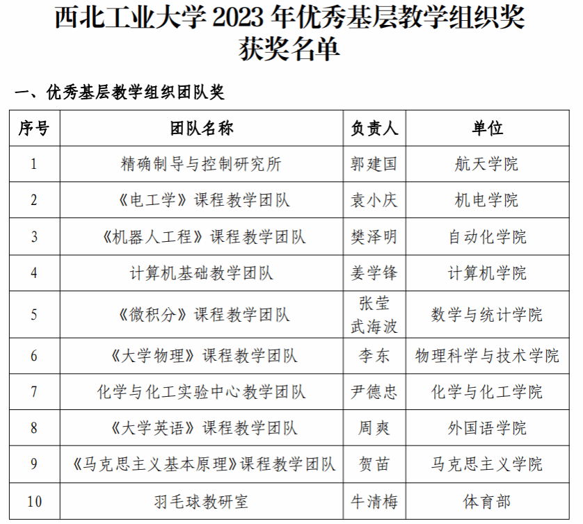 近日,pg游戏电子模拟器精确制导与控制研究所获首批“西北工业大学优秀基层教学组织团队奖”!
