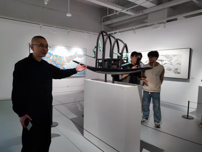 “时空探索——西北工业大学2023(西安)当代艺术邀请展”是以“航空航天航海”为内容的当代艺术展。本次展览以“时空探索”为主题,展览现场以时间顺序为节点将重要历史事件、历史人物与关键元素(航空航天航海工具的发明与创新)等串联起来,呈现出人类千百年来对宇宙星辰和海洋世界的追问、探索以及矢志不渝的梦想。此次学习将潜移默化提高同学们的艺术审美和人文素养,加深同学们对学校精神文化的理解和感悟。