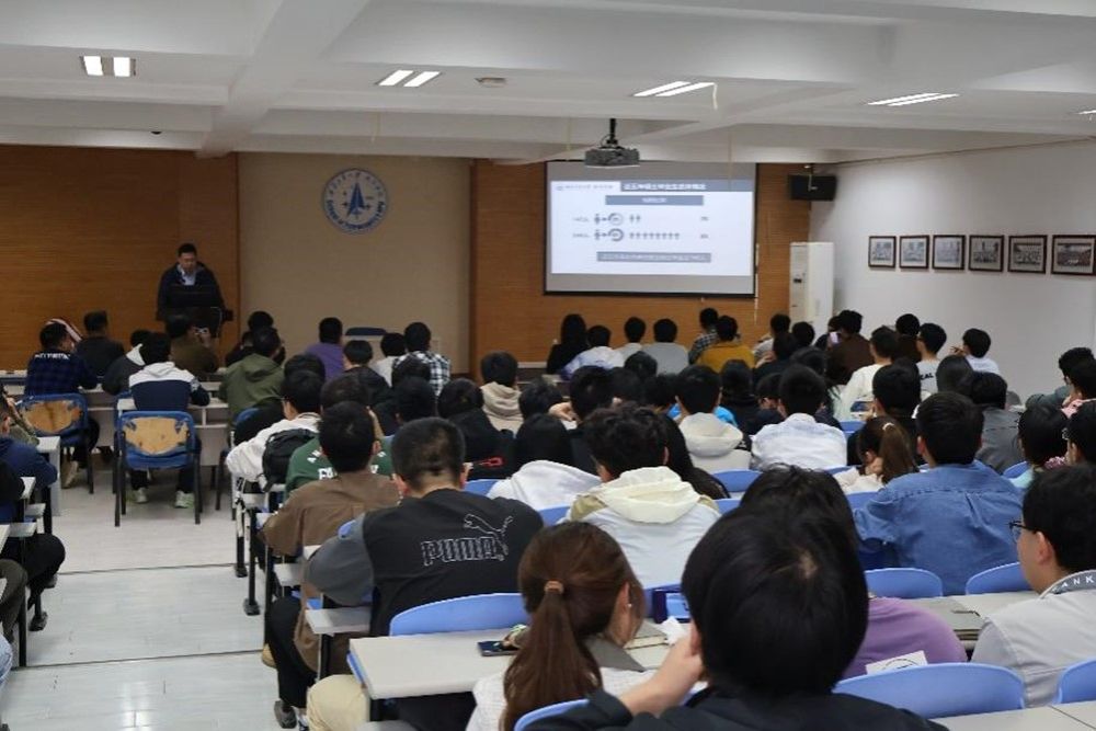 韩冬书记以《航天学子去哪儿了》为题,通过详实的数据,从多个维度——就业区位、行业分布、就业与深造的比例、以及顶尖签约单位等方面,对我院毕业生就业情况进行了全面阐述。鼓励同学们树牢航天报国的意识,敢于上大舞台、入主战场。要结合自身特点和专业优势,明确求职目标、打造完美简历、提高面试技巧、保持积极心态,用好学校提供的优质就业资源,积极求职、审慎选择、果断签约,将个人发展与国家需求紧密结合,实现人生价值。