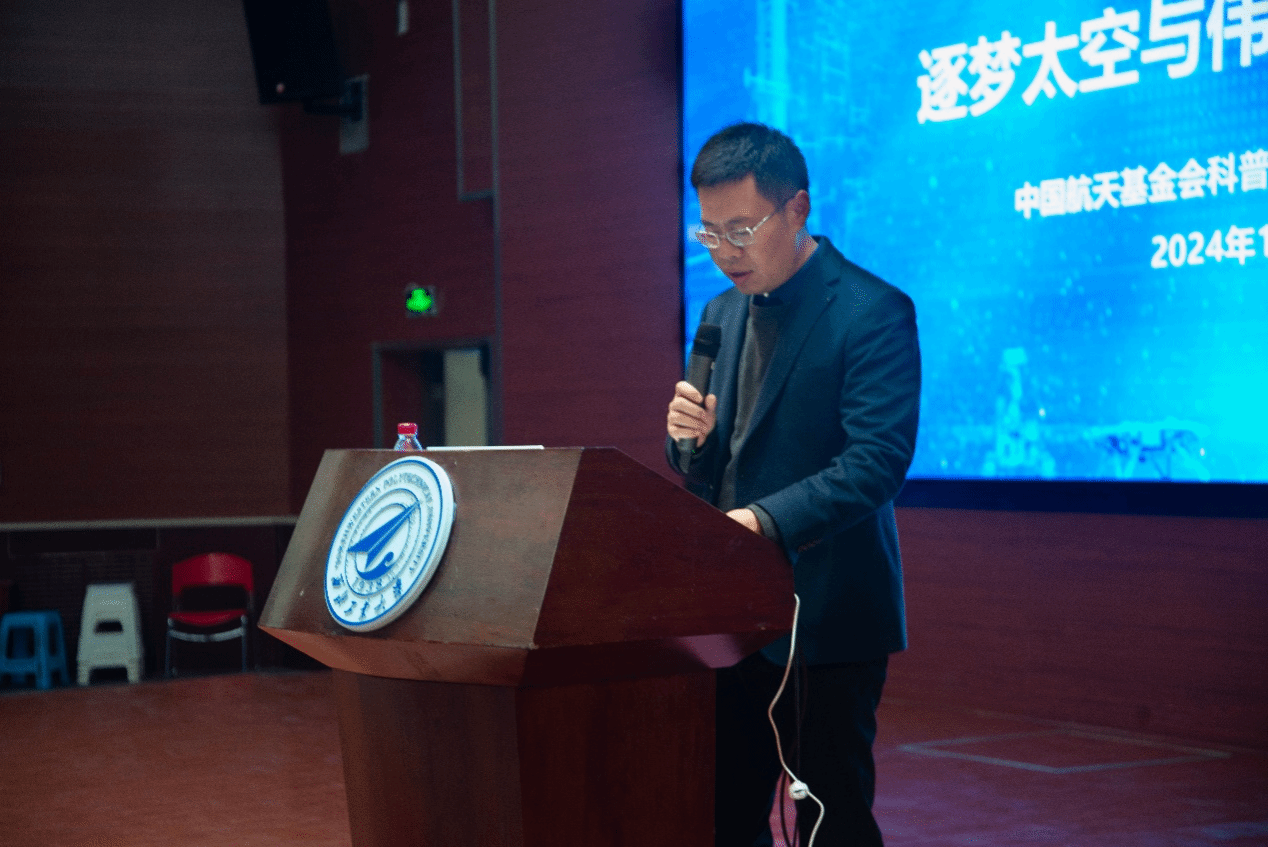 西昌卫星发射中心原党委书记孙保卫、中国科协青少年科技中心科普活动处副处长张奇、航天科工三院310所陈碧,pg游戏电子模拟器党委副书记韩冬、pg游戏电子模拟器2024级本科生辅导员高戈以及学生代表300余人参加了此次报告会。本次报告会由韩冬主持。