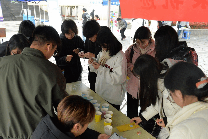 在这里,进行着一场别样的解压活动。在有限的时间内,同学们将泡沫纸上的泡泡一一捏碎。每一次按压,都是一次心灵的释放与解压。每一声泡泡破裂的声音,谱写成一曲释放情绪、享受乐趣的美妙乐章。