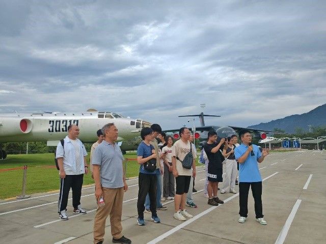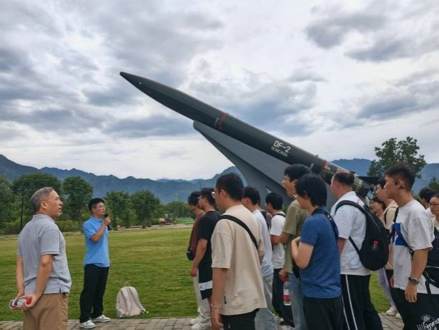 最后,师生们来到我校军工素质教育实践中心户外停机坪,参观包含DF-2导弹及运-20、歼-7、直-5等多种机型。通过讲解员详细介绍,让师生们深刻体会“三航”领域攻坚克难的奋斗历程。运-20运输机在抗疫救灾中的卓越贡献、歼-6护卫长空的飒爽英姿,生动诠释了“国之重器”背后的科学家精神与报国情怀。一架架承载着梦想与荣耀的飞机,生动展现了"三航"(航空、航天、航海)精神中敢为人先、攻坚克难的勇气和担当。