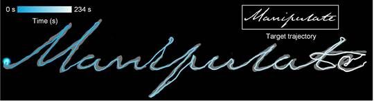 图 1 激光诱导热毛细对流驱动单个聚苯乙烯微球(0.1mm)写出Manipulate字样