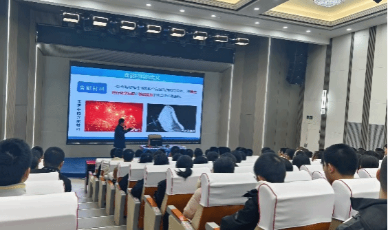 严启龙教授以《固体火箭推力控制—燃烧的力量》为题,深入浅出地介绍了固体火箭发动机的工作原理及推力控制技术。他结合国内外航天发展现状,通过生动的案例和互动问答,向同学们展示了固体推进剂在火箭推进中的关键作用。严教授还鼓励同学们让勤奋在最美的年华里熠熠闪光,同时向在场的所有同学发出了热情的邀请,欢迎大家走进西北工业大学。