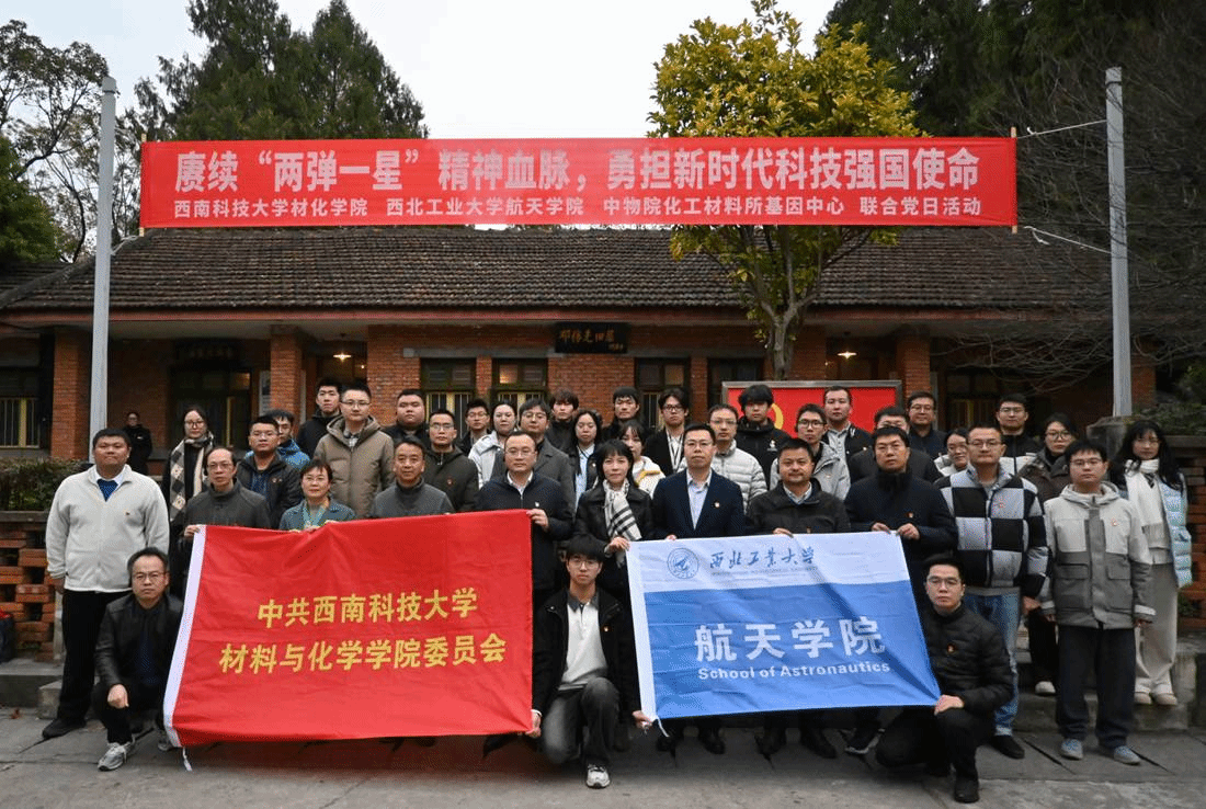 为深入学习贯彻习近平新时代中国特色社会主义思想,传承红色基因,弘扬“两弹一星”精神,pg游戏电子模拟器联合西南科技大学材料与化学学院、中物院化工材料所基因中心开展“传承两弹精神,共筑强国之梦”主题党日活动。西工大pg游戏电子模拟器党委书记黄越、副书记韩冬、空天能源技术研究所严启龙书记带队,携张庆华、聂洪奇等教师骨干与师生融合支部优秀学生党员一行赴绵,与西南科技大学材料与化学学院党委金波书记所带领的西科大材化支部和中物院化材所基因中心支部会晤。