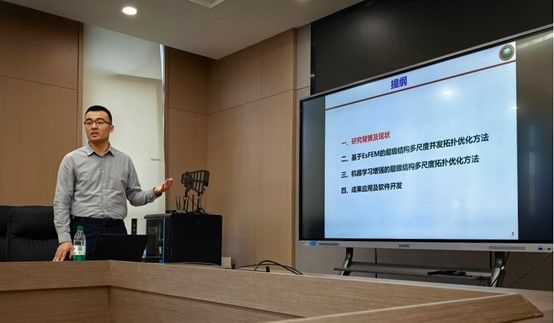 报告中,高汝鑫副教授首先系统梳理了计算结构动力学领域的相关研究进展,他重点阐述了融合多层级设计理念与拓扑优化方法的创新结构设计范式,如何能够突破传统均质结构的设计极限,实现对基体材料力学性能的最大化利用。