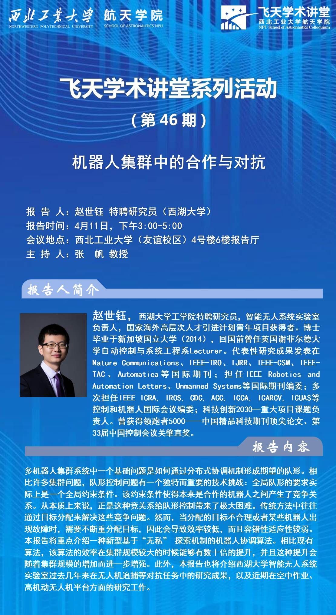 飞天学术讲堂系列活动(第46期)——机器人集群中的合作与对抗