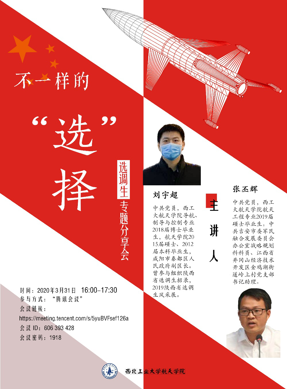 为了让毕业学生在毕业季能多一种选择的可能性,对选调生岗位有更清晰的认识,树立正确的就业择业观念。3月31日,pg游戏电子模拟器承办的第81期工大职讲堂,选调生专题线上分享会如约开讲。本期主讲嘉宾是毕业于pg游戏电子模拟器的两位优秀院友,刘宇超和张丕辉。pg游戏电子模拟器党委副书记王强、专职辅导员巴燕以及120余名学生参加了此次分享会,本次分享会由巴燕主持。
