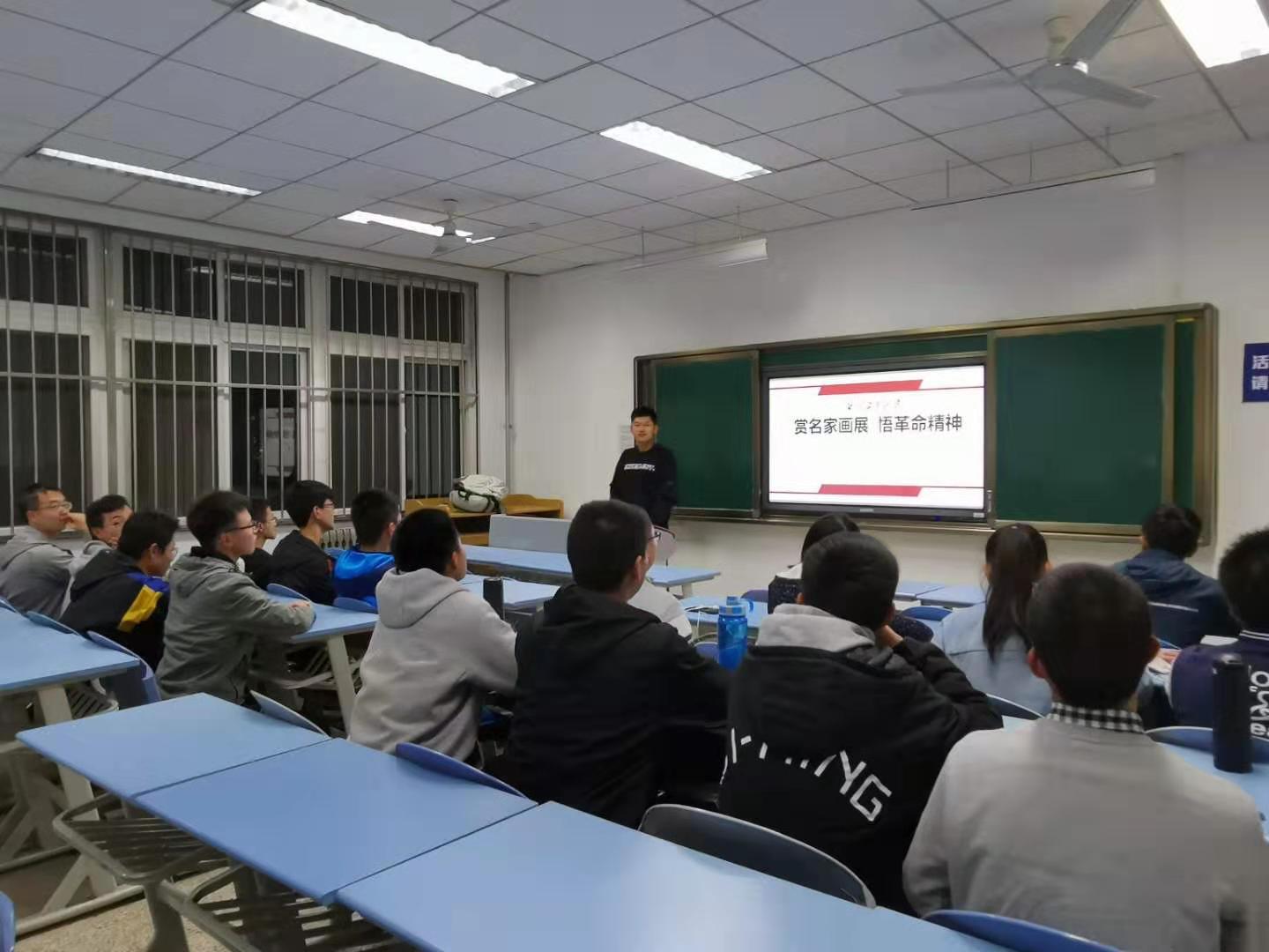 首先,同学们以宿舍为小组,前往启真楼参观画展,感悟抗日革命精神;然后,由团支部书记田雨丰组织进行了观后交流与总结,在总结会上,各小组代表畅谈自己的感想启发,与大家分享并交流心得体会。