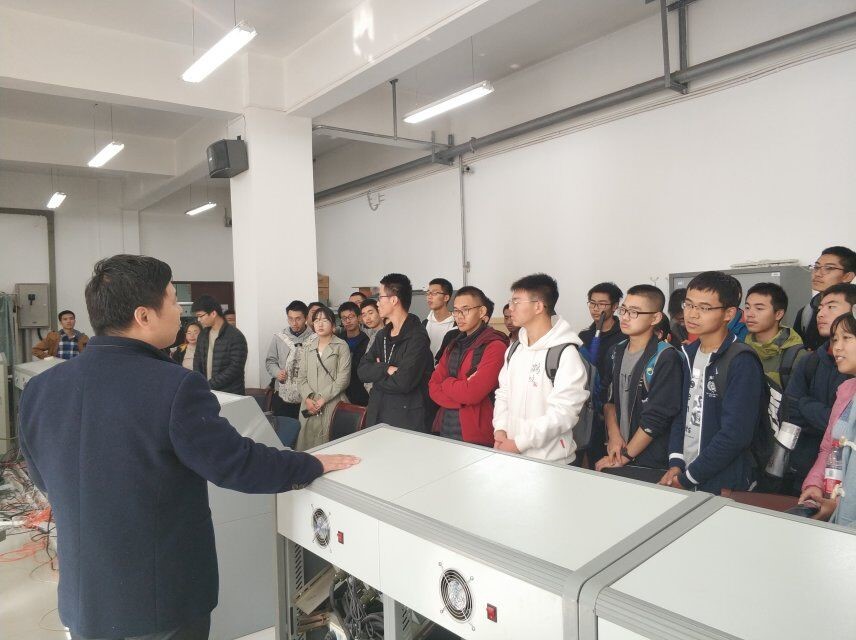 首先,pg游戏电子模拟器老师郭宗易详细介绍了精导所的历史,带同学们参观了高低温湿环境实验室,播放了关于飞行器的各类影像资料:模拟在18.4g离心左右下测试卫星的视频、高倾角导弹发射成功的慢动作视频、应用前景十分广阔的灭火弹视频……使同学们对航天有了进一步的认识,增加了自豪感与使命感。