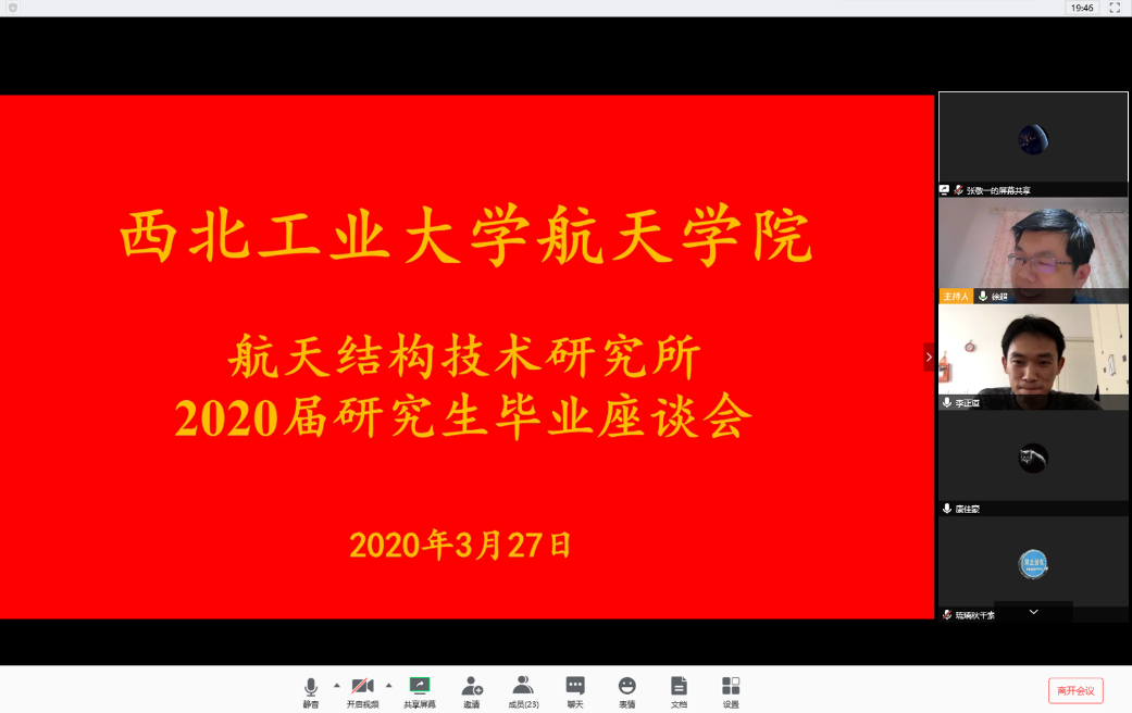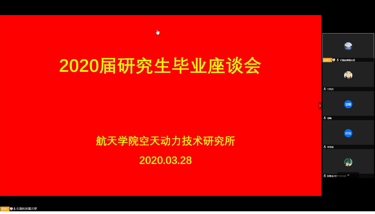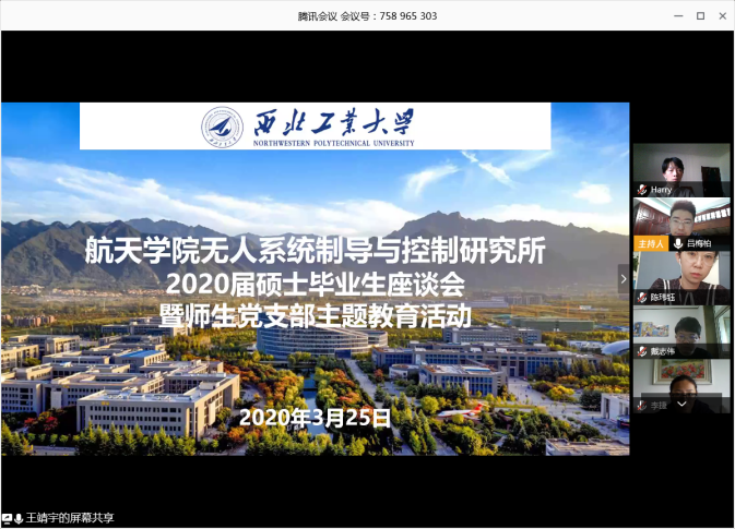 2020年3月25日至4月2日,pg游戏电子模拟器按照学校要求,以研究所为单位组织召开了“感恩工大情 激扬爱国志”2020届研究生毕业座谈会,学院领导、研究生导师和2020届毕业研究生共同参加。
