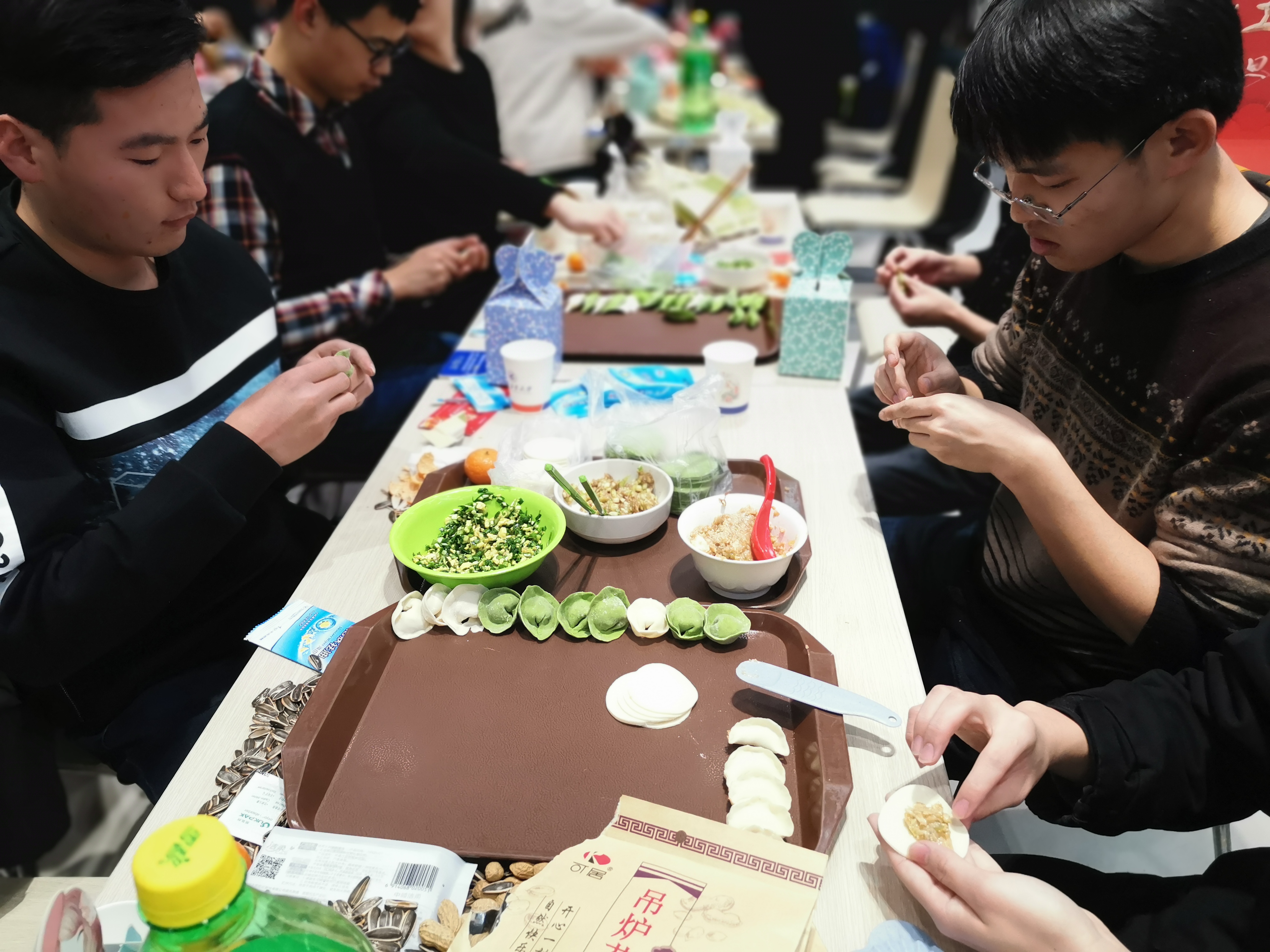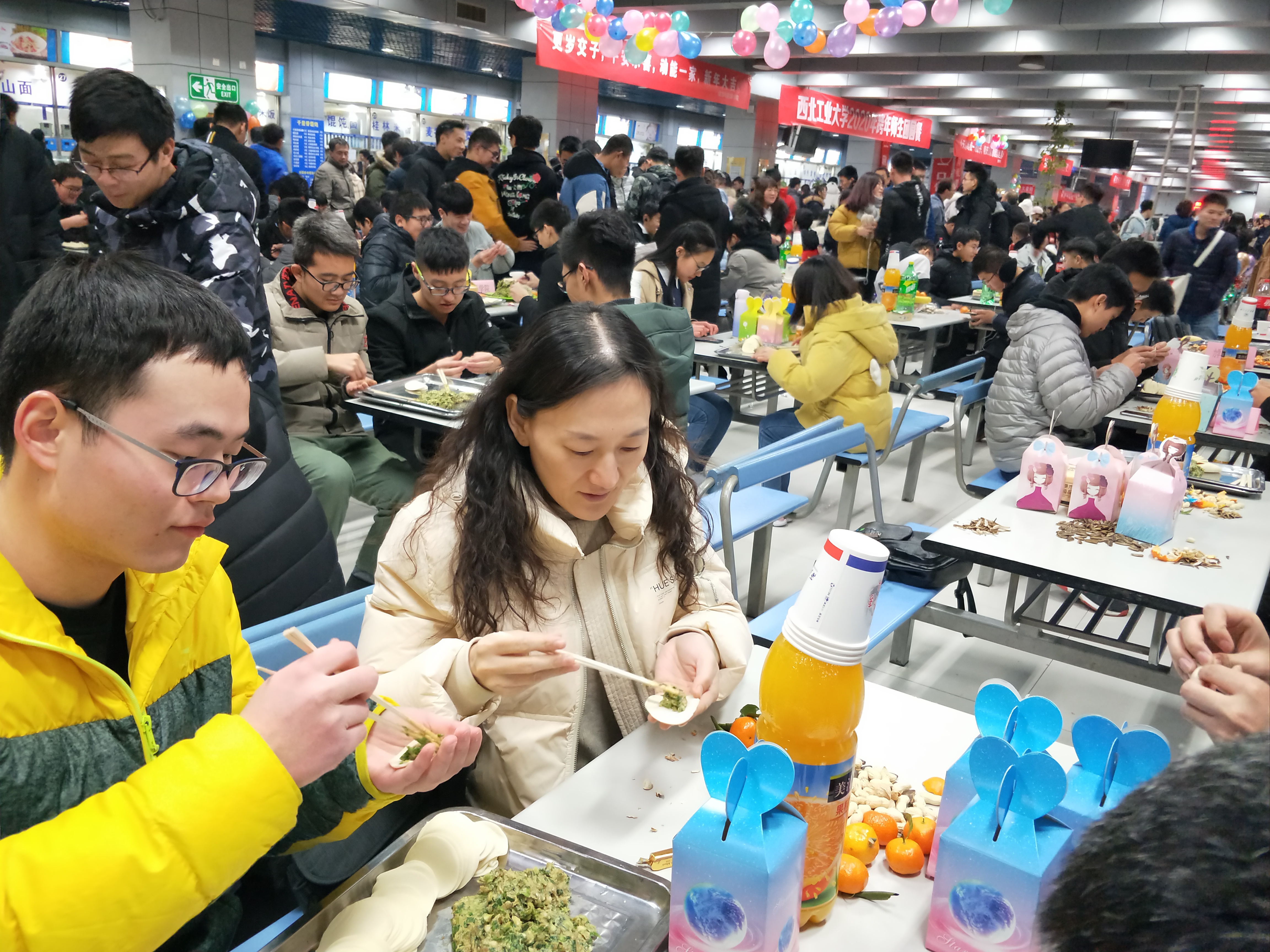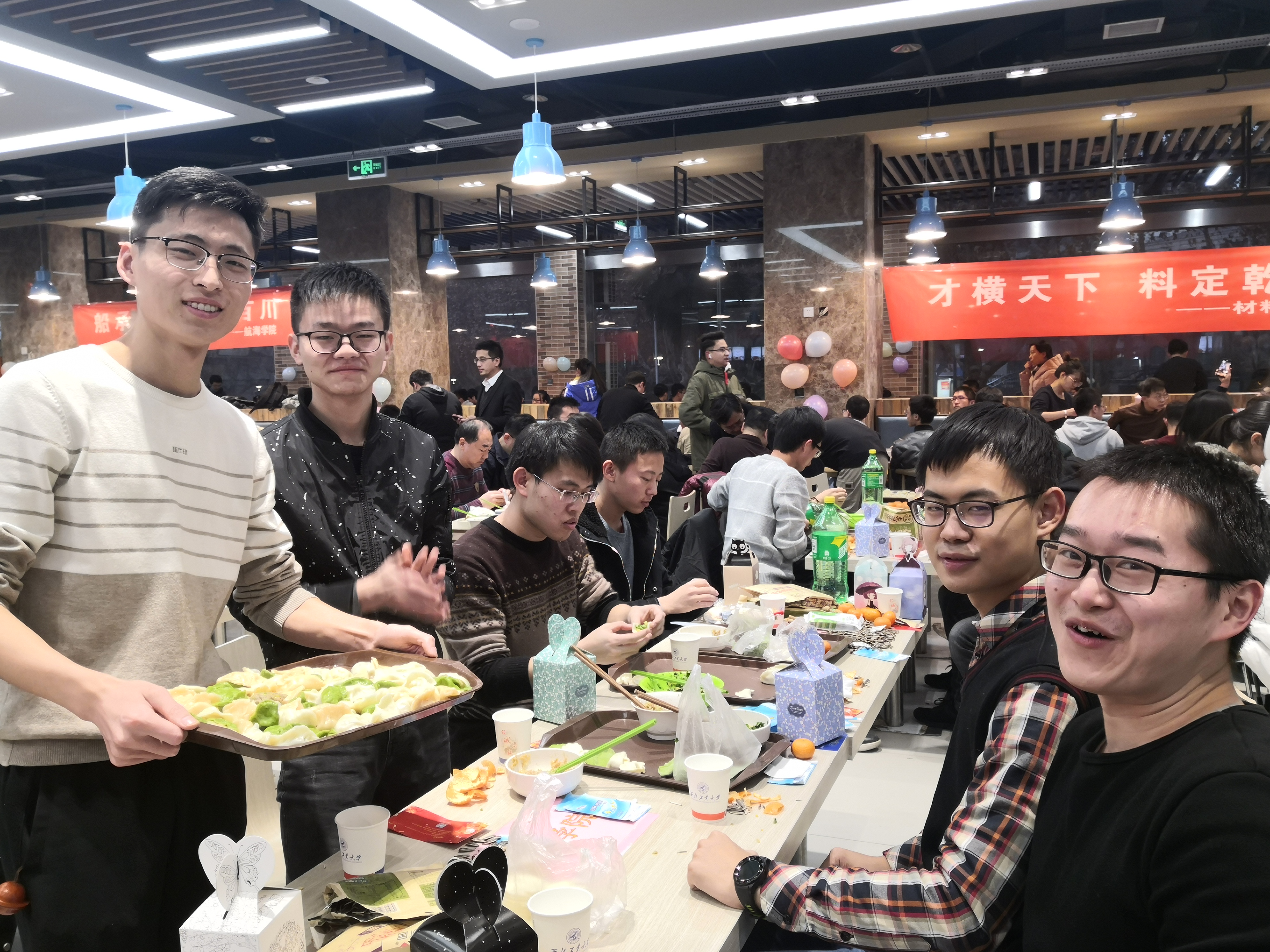 夜幕降临,万众瞩目的跨年活动拉开帷幕。跨年团圆餐在两校区学生餐厅拉开帷幕,pg游戏电子模拟器师生领取了饺子皮和饺子馅后,围坐在一起,开始了自己的包饺子之旅。pg游戏电子模拟器院长唐硕、党委副书记(主持工作)岳晓奎,副院长秦飞、张科,党委副书记常威威、王强以及班主任、辅导员、导师代表、学院办公室老师等来到现场,与同学们一起包饺子、唠家常,和同学们聊着这一年的学习与收获,表达对同学们新年的期许与祝愿。随着热气腾腾的饺子一盘接一盘地端上桌,同学们一齐举杯,共贺新年,现场气氛其乐融融。学校校领导与pg游戏电子模拟器的同学们亲切交谈,表达学校对同学们的关心与爱护,了解学生心中所思所想,并对同学们送上新年祝福。同学们发挥奇思妙想,激情创作,各种形状的饺子诞生。有的饺子中包裹着硬币和花生,吃到的同学收获了大家真诚的祝福。团圆餐其乐融融,节日氛围浓厚。最后,在“包饺子大赛”、“倒念词语比赛”等形式多样的活动中,包饺子活动圆满结束。