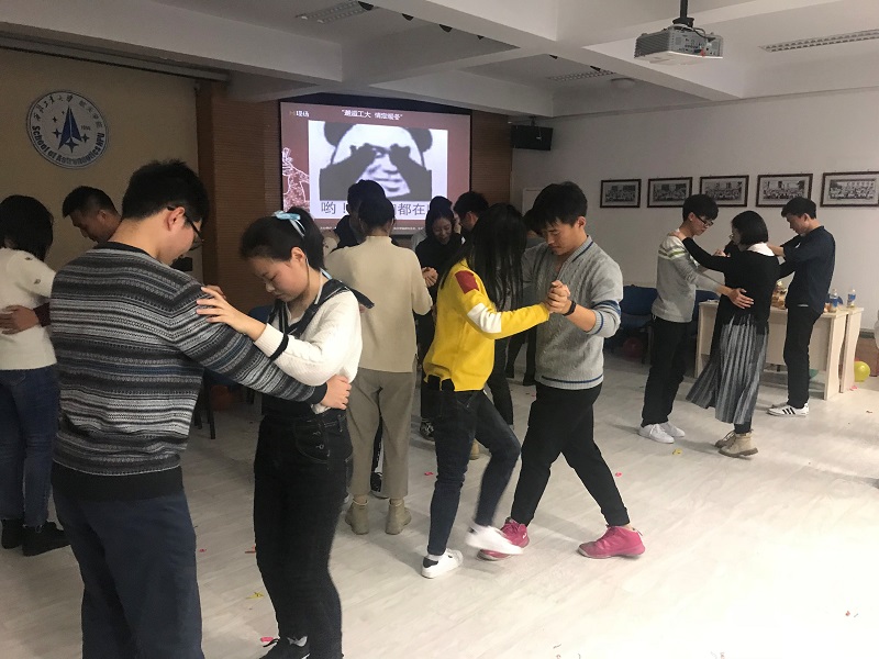 活动过程中,心有千千结、应答自如、五毛一块,三个游戏层层递进,同学们逐渐缓解了紧张的心情,参与热情也越来越高涨,欢声笑语回荡在工大的暖冬里。游戏结束后,生命学院辅导员王晓鸽现场教导,大家跳起了华尔兹,同学们舞步翩翩,笑语盈盈,都尽情的享受着这美好的时刻。冬日的寒冷抵不过同学们的热情,凌冽的寒风化为了友谊的桥梁。