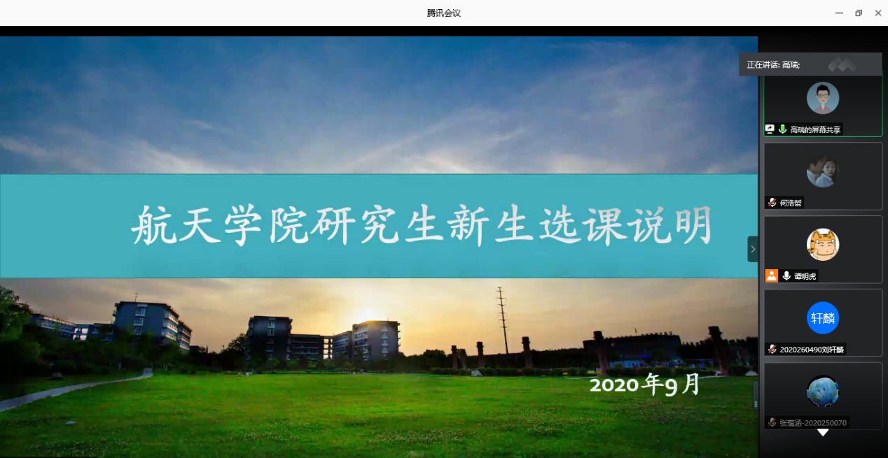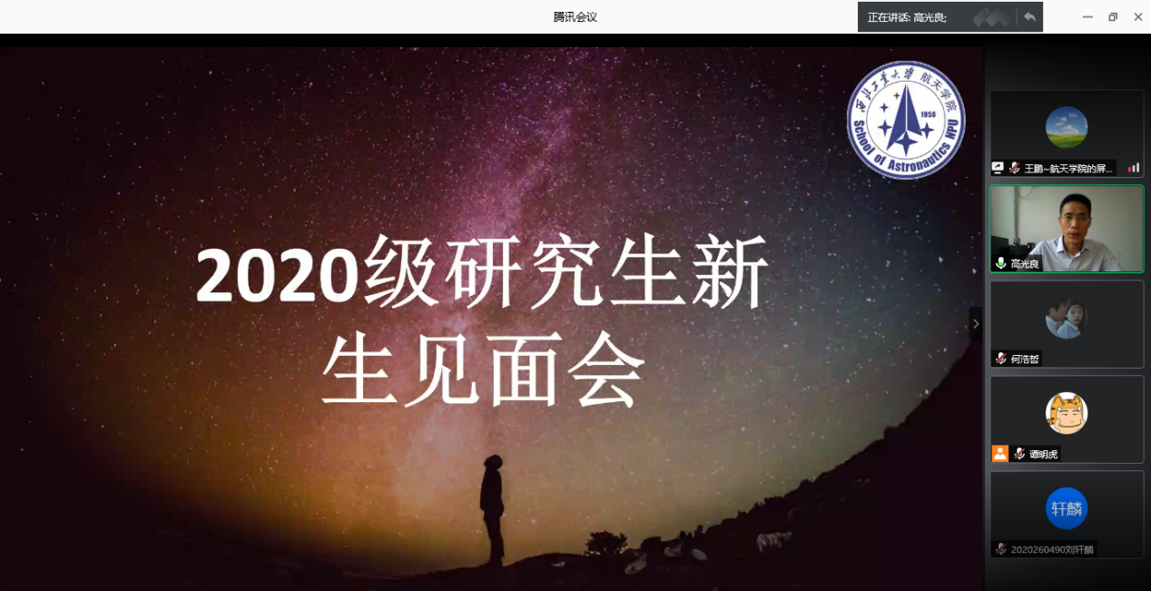 9月1日下午,pg游戏电子模拟器举行2020级研究生新生见面会。由于疫情防控要求,今年新生见面会改为线上进行。见面会上,学院领导与负责老师同2020级硕博新生分享航天精神,探讨交流如何在pg游戏电子模拟器进行科研学习。见面会由院长助理王鹏老师主持。