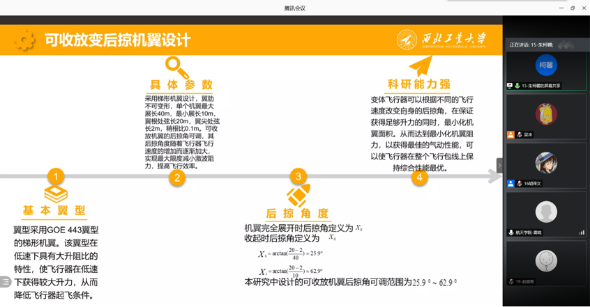 此次答辩分为答辩和老师提问两个环节,整场答辩内容丰富,学术氛围浓郁。答辩环节中,每支参赛队伍有7分钟的答辩时间,答辩成员依次介绍了项目设计、工作原理、创新特色、应用前景等多方面,对作品进行了充分阐释。其中冯杰小组的《小型无人机电磁弹射的研究》以及袁曦小组的《幻映视觉》则以视频的方式向大家充分地展示了作品,效果震撼,给评委们留下了深刻的印象。